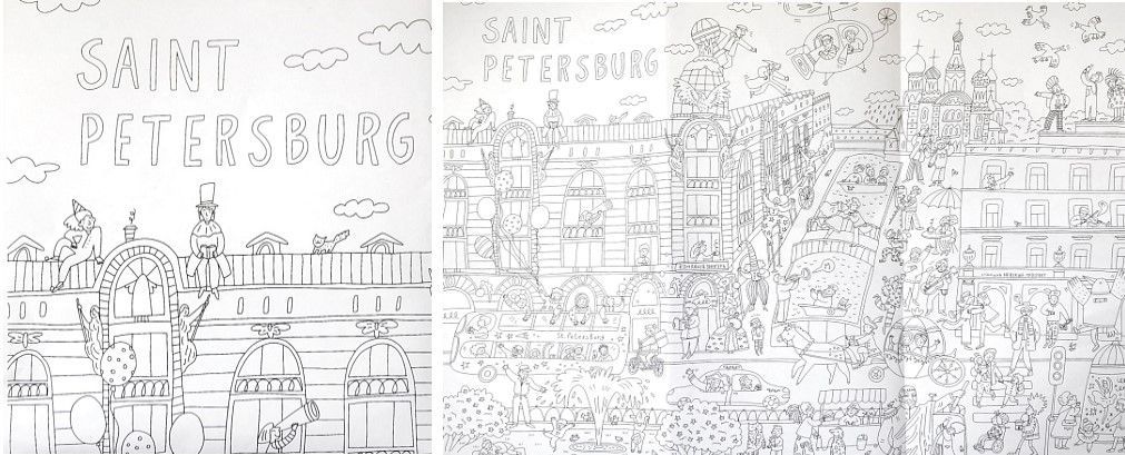 Раскраска складная по Санкт-Петербургу. Раскрасив ее вы получите картине себе на стену с центром Петербурга и его жителями. Подходит для рисования цветными карандашами Отличная развивающая раскраска, где вы с ребенком узнаете о различных интересных местах Петербурга, как выглядят известные места города, улицы, здания. Раскраски - отличная альтернатива игровому картонному домику. Такие детские раскраски могут стать игрой для умных школьников, подростков и маленьких детей, Это отличный подарок по любому поводу: День рождения, Новый год, 8 марта и просто так. Не всегда подходит для определенных видов фломастеров и маркеров.