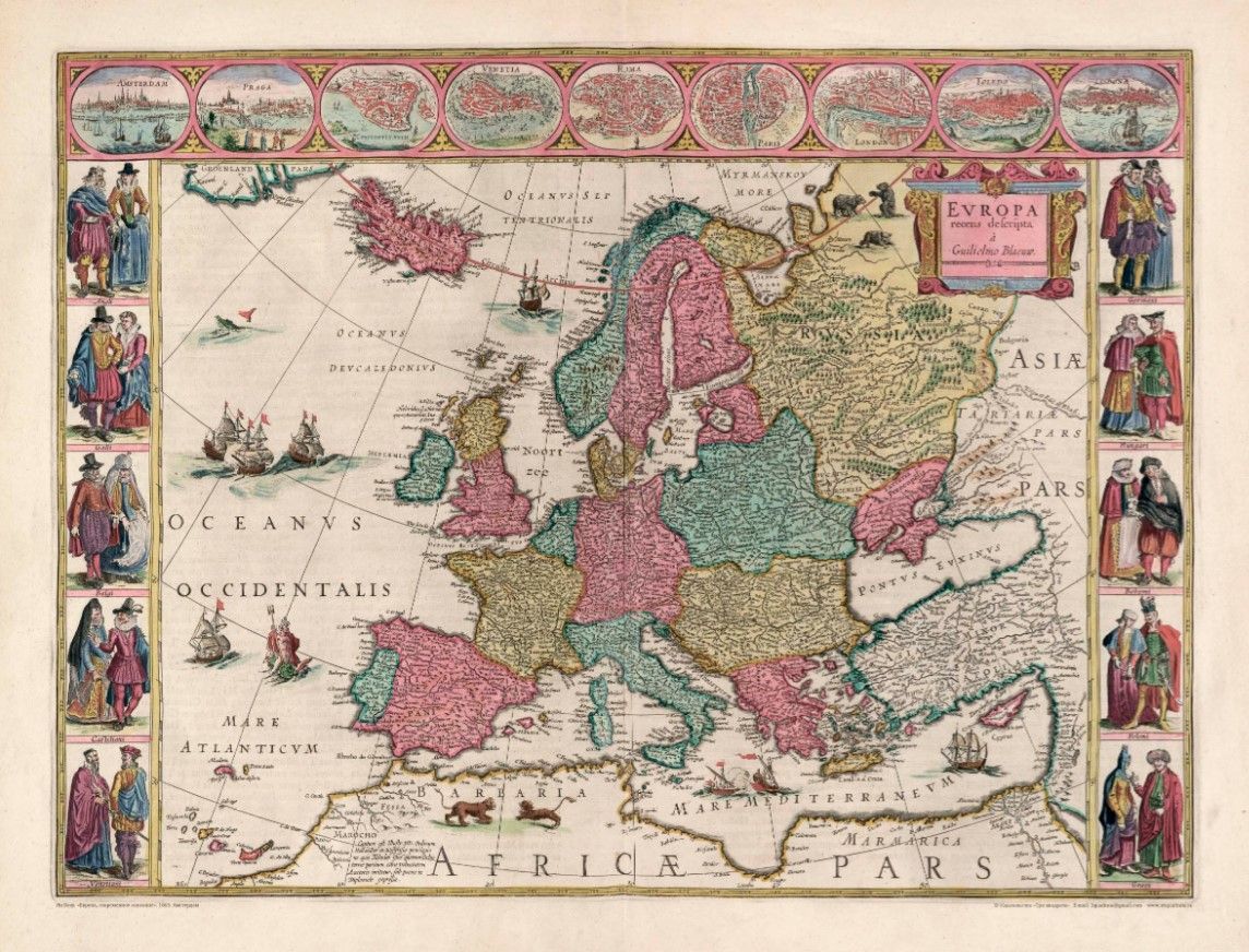 - Репринт карта Европы Блау Я .